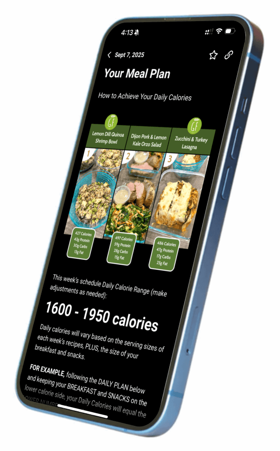 with nutrient-dense Weekly Recipes, a Meal Plan to meet your daily calories,